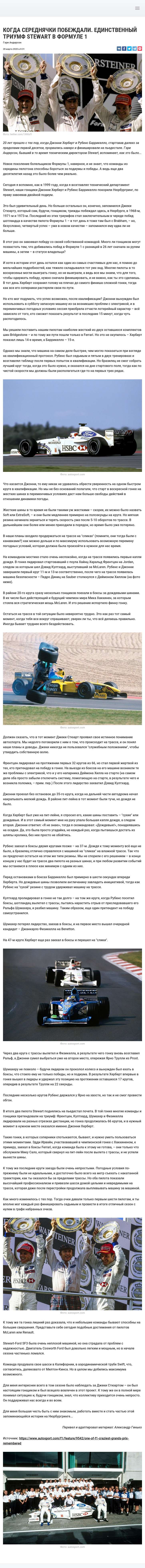 20 лет прошло с тех пор, когда Джонни Херберт и Рубенс Баррикелло, стартовав далеко за пределами первой десятки, прорвались наверх и финишировали на пьедестале. Гэри Андерсон, бывший в то время техническим директором Stewart, вспоминает, как это было…
