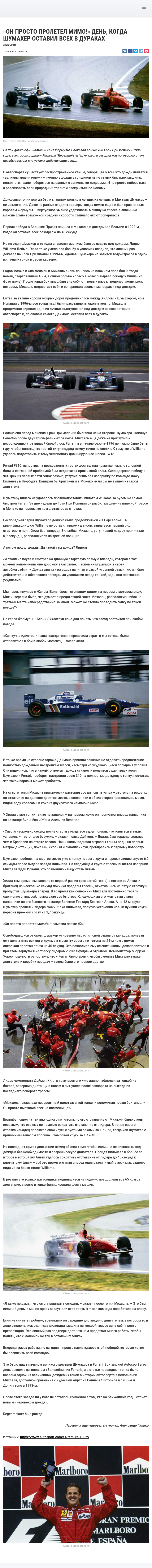 Не так давно официальный сайт Формулы 1 показал эпический Гран При Испании 1996 года, в котором родился Михаэль «Regenmeister» Шумахер, а сегодня мы поговорим о том незабываемом дне устами действующих лиц…