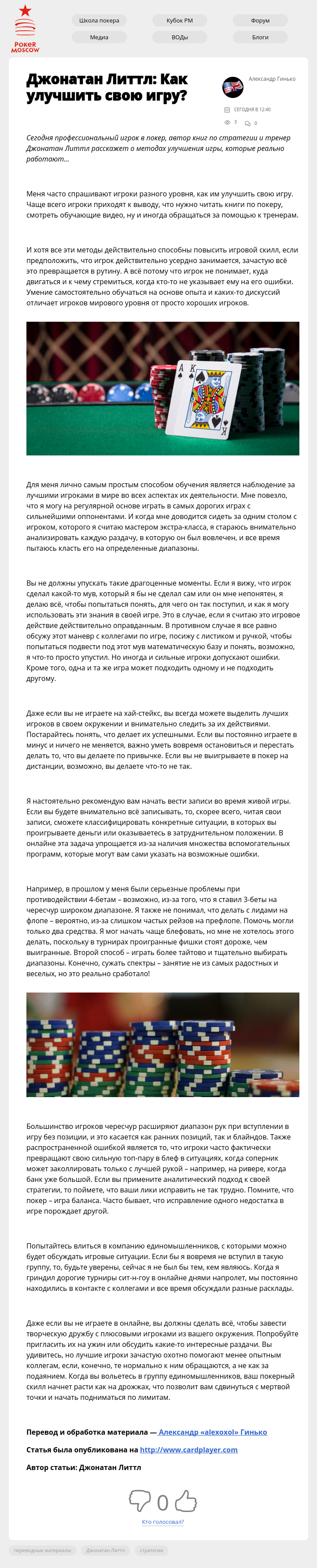 Сегодня профессиональный игрок в покер, автор книг по стратегии и тренер Джонатан Литтл расскажет о методах улучшения игры, которые реально работают…
