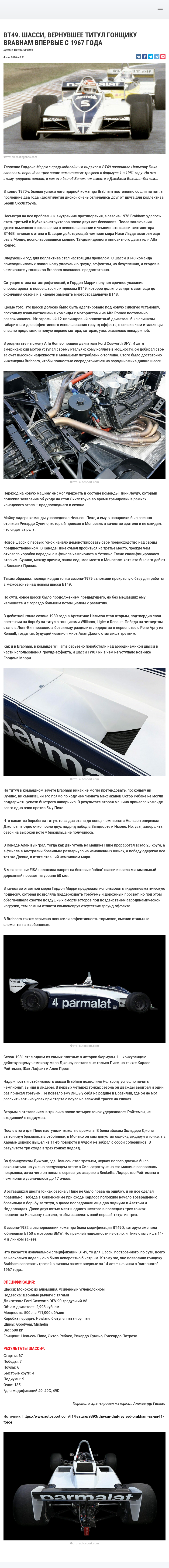 Творение Гордона Марри с предъюбилейным индексом BT49 позволило Нельсону Пике завоевать первый из трех своих чемпионских трофеев в Формуле 1 в 1981 году. Но что этому предшествовало, и как это было? Вспомним вместе с Джейком Боксалл-Леггом…