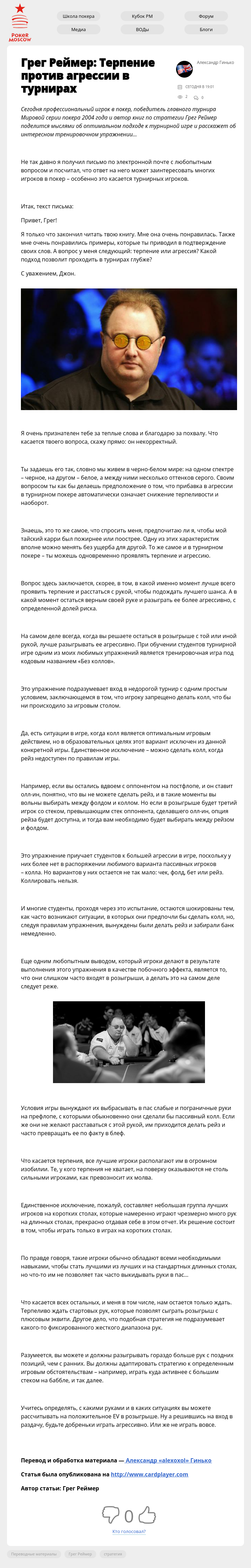 Грег Реймер: Терпение против агрессии в турнирах