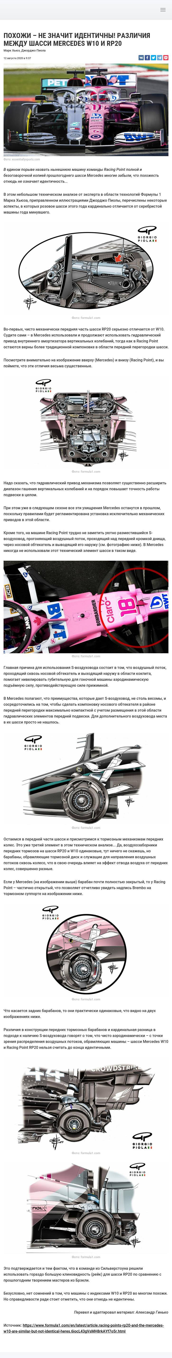 В едином порыве назвать нынешнюю машину команды Racing Point полной и безоговорочной копией прошлогоднего шасси Mercedes многие забыли, что похожесть отнюдь не означает идентичность…
