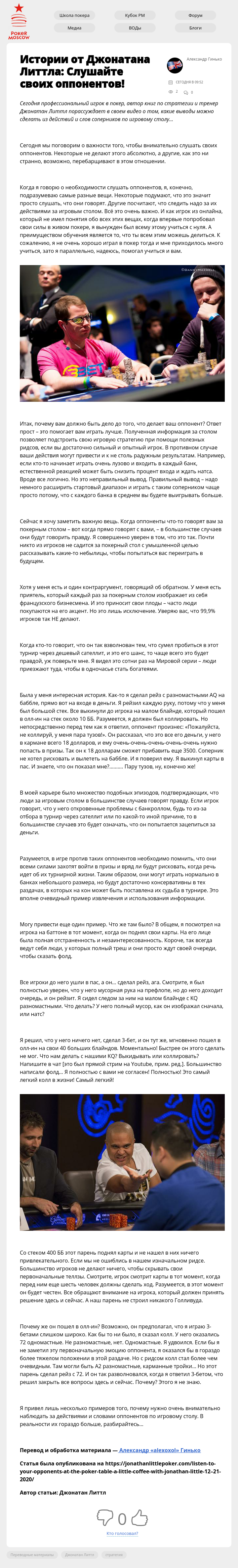 Сегодня профессиональный игрок в покер, автор книг по стратегии и тренер Джонатан Литтл порассуждает в своем видео о том, какие выводы можно сделать из действий и слов соперников по игровому столу…