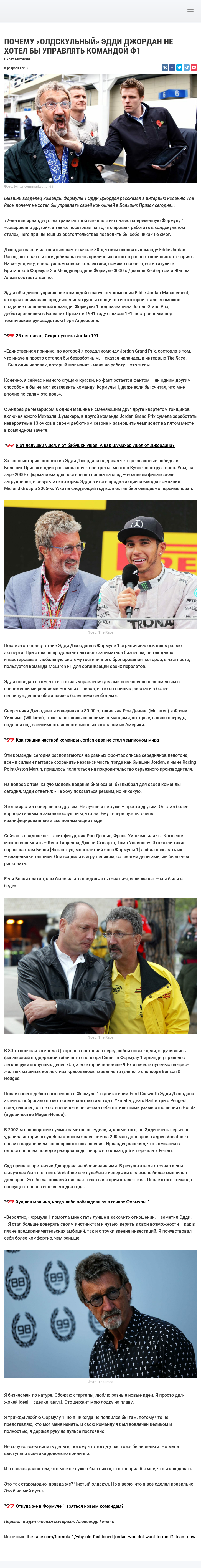 ПОЧЕМУ «ОЛДСКУЛЬНЫЙ» ЭДДИ ДЖОРДАН НЕ ХОТЕЛ БЫ УПРАВЛЯТЬ КОМАНДОЙ Ф1
