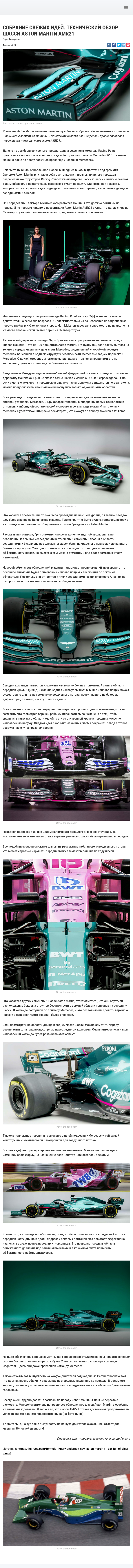 Компания Aston Martin начинает свою эпоху в Больших Призах. Каким окажется это начало – во многом зависит от машины. Технический эксперт Гэри Андерсон проанализировал новое шасси команды с индексом AMR21…