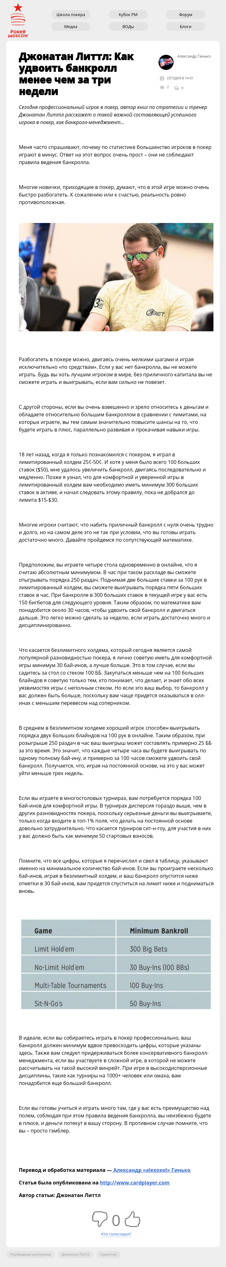 Сегодня профессиональный игрок в покер, автор книг по стратегии и тренер Джонатан Литтл расскажет о такой важной составляющей успешного игрока в покер, как банкролл-менеджмент…