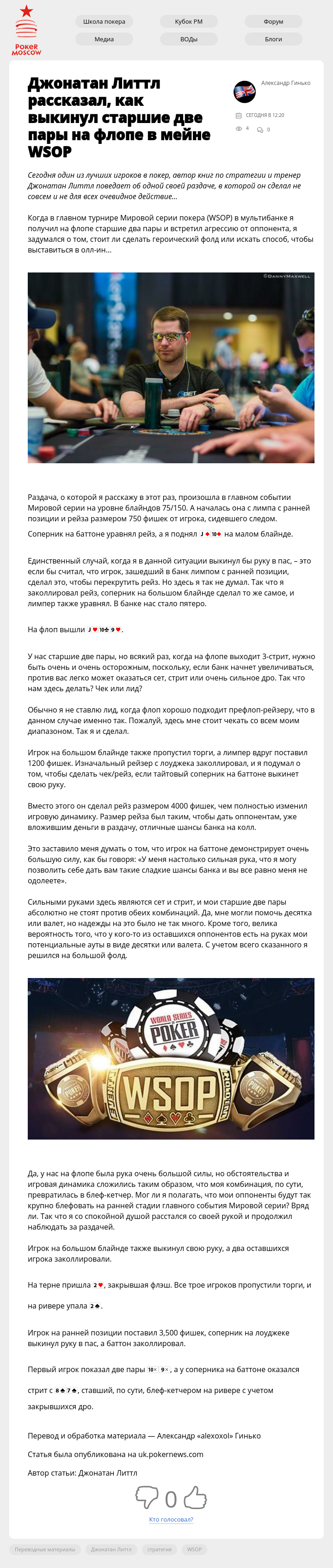 Джонатан Литтл рассказал, как выкинул старшие две пары на флопе в мейне WSOP