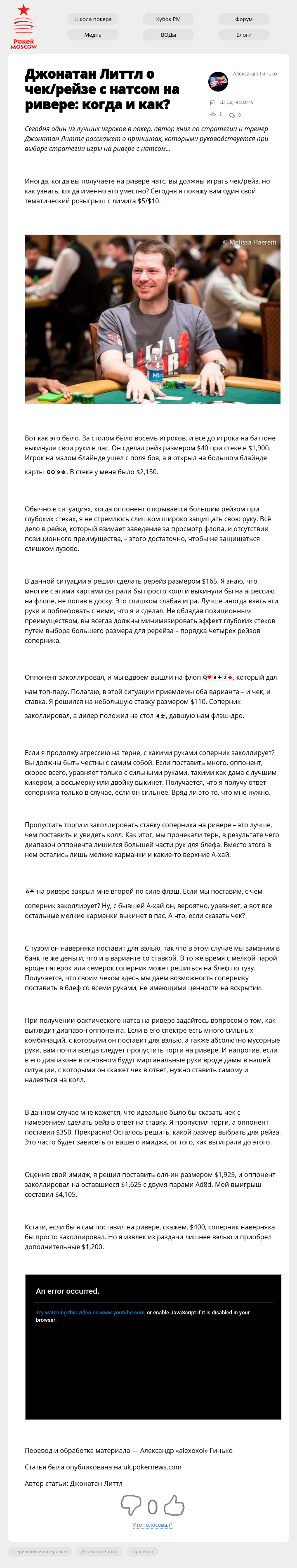 Сегодня один из лучших игроков в покер, автор книг по стратегии и тренер Джонатан Литтл расскажет о принципах, которыми руководствуется при выборе стратегии игры на ривере с натсом…
