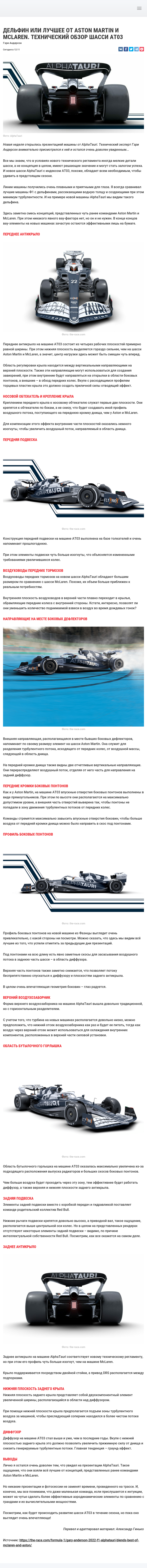 Новая неделя открылась презентацией машины от AlphaTauri. Технический эксперт Гэри Андерсон внимательно присмотрелся к ней и остался очень доволен увиденным…