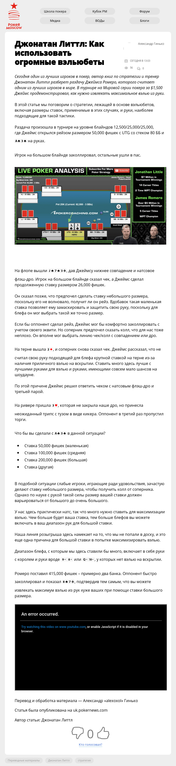 Сегодня один из лучших игроков в покер, автор книг по стратегии и тренер Джонатан Литтл разберет раздачу Джеймса Ромеро, которого считает одним из лучших игроков в мире. В турнире на Мировой серии покера за $1,500 Джеймс продемонстрировал, как нужно извлекать максимальное вэлью из руки.