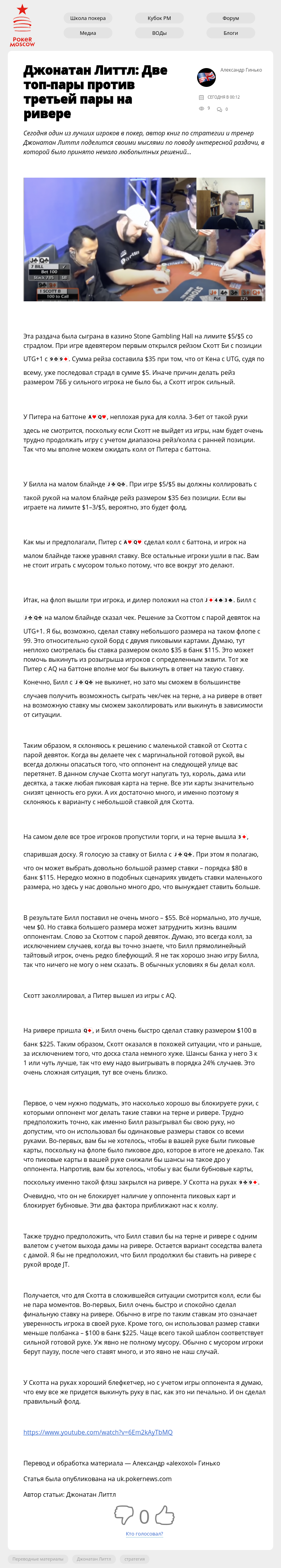 Сегодня один из лучших игроков в покер, автор книг по стратегии и тренер Джонатан Литтл поделится своими мыслями по поводу интересной раздачи, в которой было принято немало любопытных решений…
